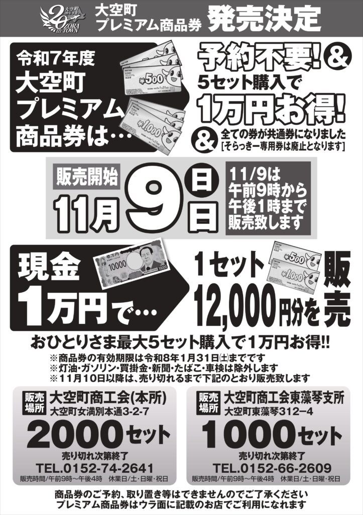 令和7年度 大空町プレミアム商品券 取扱店一覧&発売のお知らせ