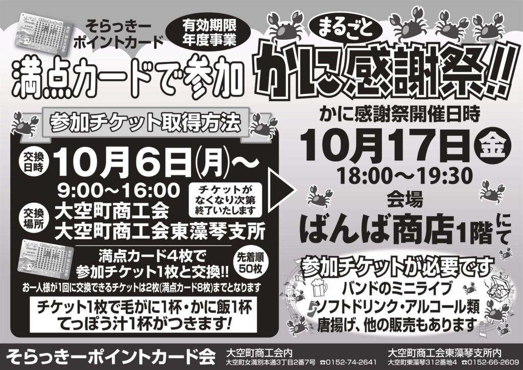 かに まるごと 感謝祭!!【そらっきーポイントカード会】