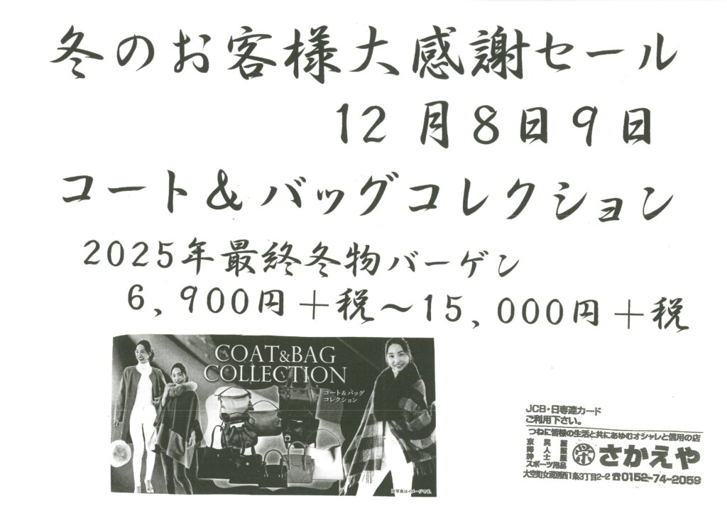 【さかえや呉服店】 2025 12/08 すべての皆様へ 2025年12月8日 EPSON MFP image すべての皆様へ セール 冬物 北海道 大空 大空町 女満別 【マルカ樫原商店】 【フジヤ呉服店】