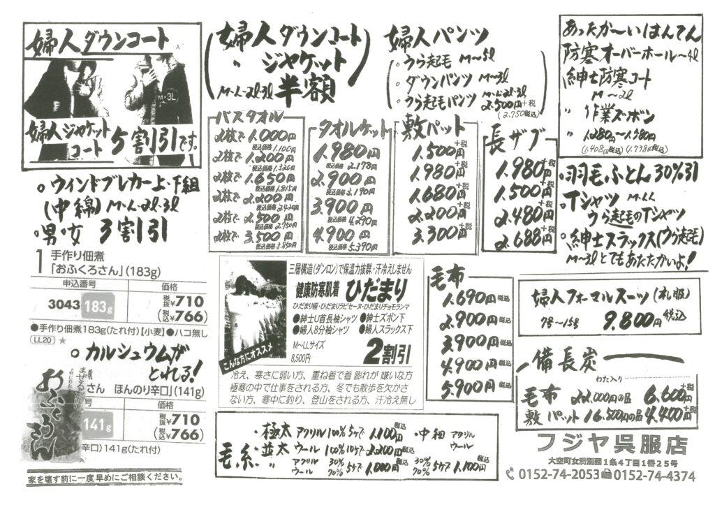 【フジヤ呉服店】 2025 12/09 すべての皆様へ そらっきーポイントカード会 2025年12月9日 EPSON MFP image すべての皆様へ そらっきーポイントカード会 イベント セール 冬物 北海道 大空 大空町 女満別 【さかえや呉服店】 【岩原販売所】
