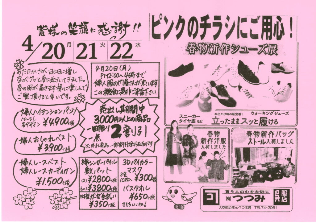 【つつみ呉服店】 2026 4/20 すべての皆様へ そらっきーポイントカード会 2026年4月20日 EPSON MFP image すべての皆様へ そらっきーポイントカード会 セール 北海道 大空 大空町 女満別 大空町商工会青年部 交通遺児募金